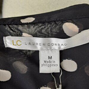 Lauren Conrad Size Medium Black with White Polka Dots Button Down Tunic Sheer