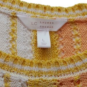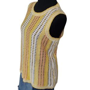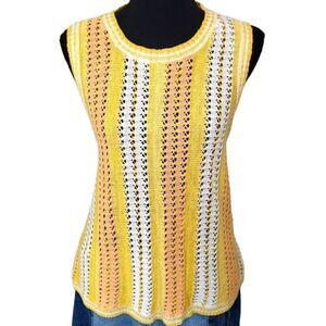 Lauren Conrad- Springy Soft Loose Knit Striped Yellow Tank Sweater Top, Sz Large