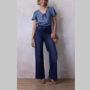 LC Lauren Conrad Super High Rise Wide Leg Denim Trousers Jeans