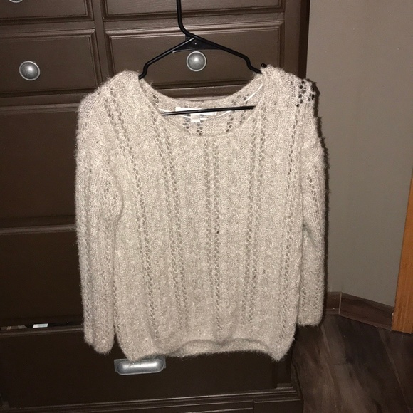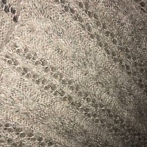 Super soft and in great condition. Size small and is a cream color with pink and blue shiny tinsel intertwined.