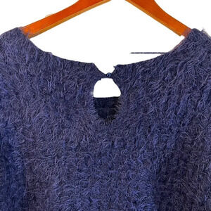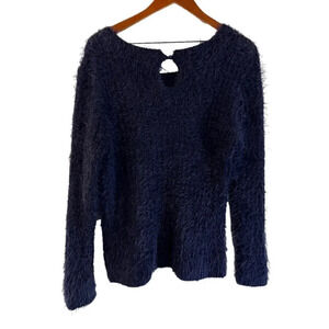Lauren Conrad Sweater Dark Navy Blue Fuzzy Knit XL Pullover Long Sleeves Keyhole