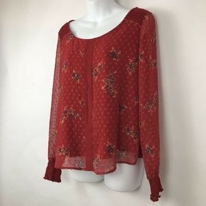 LC Lauren Conrad Clip Dot Womens Blouse Red Floral Long Sleeve Lined XS New