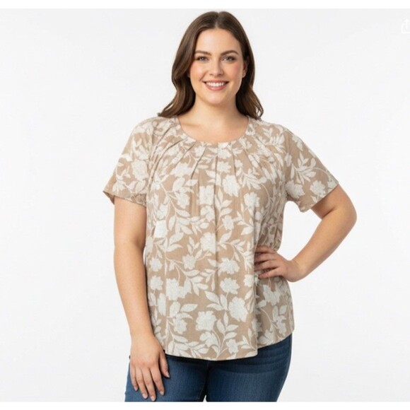 Lauren Conrad Top Shirred Pleated Shell Print Women's 2X Peasant Flowy Beachy