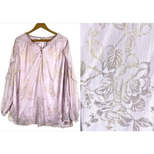Lauren Conrad Tunic Top Sz 2X Pale Pink Chiffon Gold Floral Romantic Fairy Core