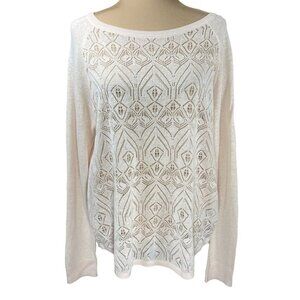 Lauren Conrad Windowpane Knit Long Sleeve Sweater Blush Pink Size L Large