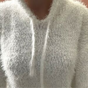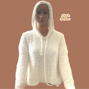 Lauren Conrad Winter White Long Sleeve Knit Hoodie Sweater SZ Lg