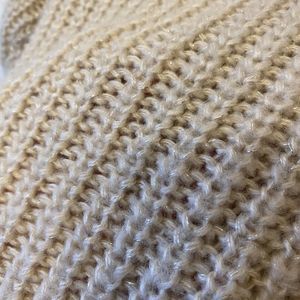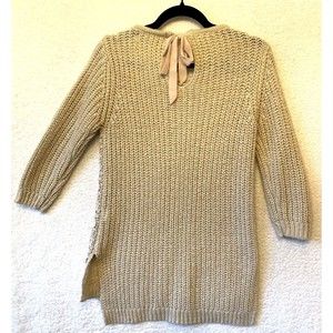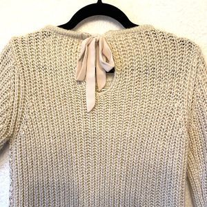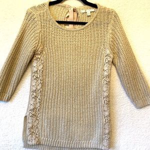 Lauren Conrad Woman Beige Lace High Low Round Neck Bow Gold Weave Sweater Size L