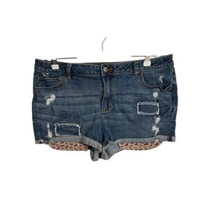 Lauren Conrad Womens 16 Peeking Pocket Jean Shorts Distressed Patches Rockabilly