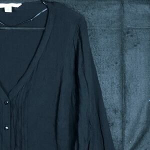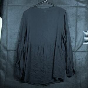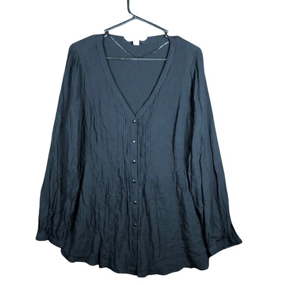 Lauren Conrad Womens Blouse Black V Neck Button Long Sleeve Flowy Lightweight XL