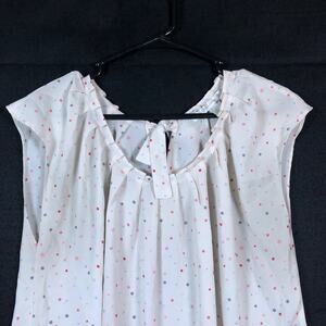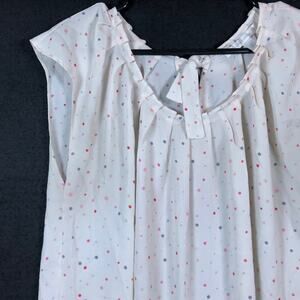 Lauren Conrad Womens Blouse White Multi Polka Dot Short Sleeve Pleated Flowy XL