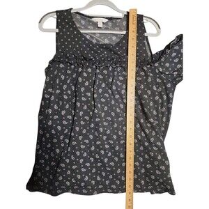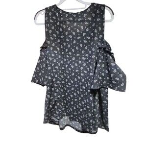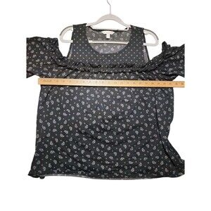 Lauren Conrad Women’s Blouse XL Black White Print Cold Shoulder Top