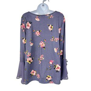 Lauren Conrad Womens Floral Print Bell Sleeve Blouse XL Purple/Pink Polyester