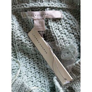 Lauren Conrad Womens Green Cable Knit Sweater M Lace Detail Acrylic Cotton Blend