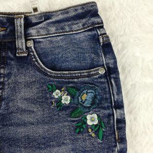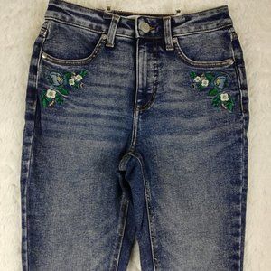 Lauren Conrad Womens Jeans Skinny Blue Denim Embroidered Floral Indigo Wash 2