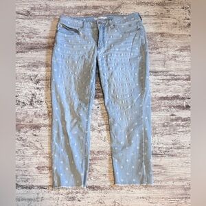 Stylish light blue jeans with playful polka dots. Perfect for casual outings. In great used condition!