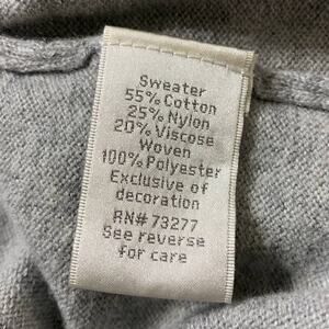 This cute sweater dress is in excellent condition! It as a cute ruffle at the bottom, 55% cotton, 25% nylon and 20% viscose. Just adorable! chest is 18.5" across, length is 28.5"
