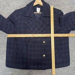 Lauren Conrad Womens Plus 1X Navy Plaid Double-Breasted Peacoat Jacket