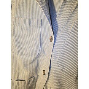 Lauren Conrad Womens Plus Size 1X Blazer Jacket Blue Stipes Stripe Denim Jean
