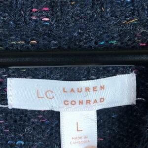 Lauren Conrad Womens Sweater Blue Multi Wool Blend Long Sleeve Crew Large