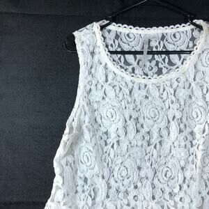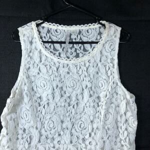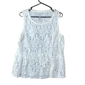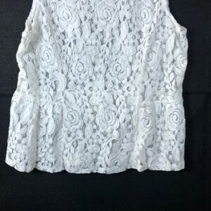 Lauren Conrad Womens Top Cream Crochet Pull Over Sleeveless Peplum Tank Large