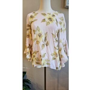 Lauren Conrad Women's Whimsical Boho Floral Bell Sleeve Top Pullover Lightweight