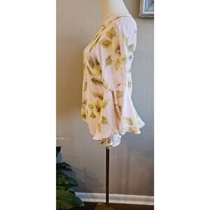 Lauren Conrad Women's Whimsical Boho Floral Bell Sleeve Top Size XS Pink Green