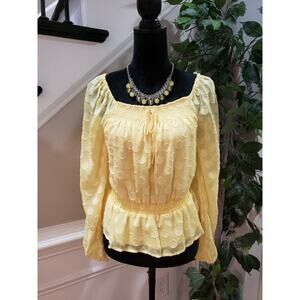Lauren Conrad Women's Yellow 100% Polyester Scoop Neck Long Sleeve Top Blouse S
