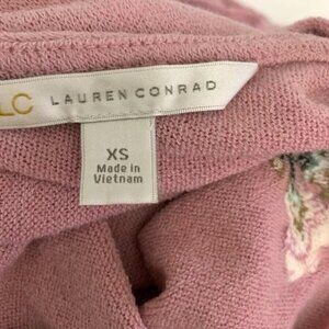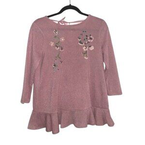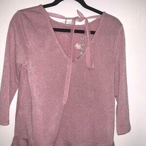 Lauren Conrad XS Pink Floral Embroidered Peplum 3/4 Sleeve Top With Back Tie Det