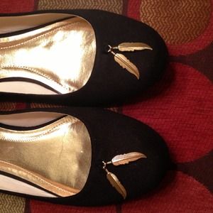 Lauren Conrad black ballet flats with gold detail!