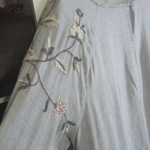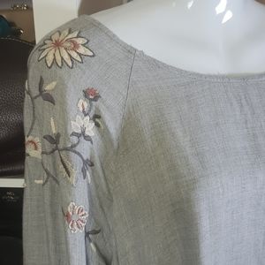 Soft and flowy embroidered blouse from lauren conrad. Features hi low hem, split tail hem in back, sweet keyhole button closure and flutter bell sleeves. All in a soft lightweight material.