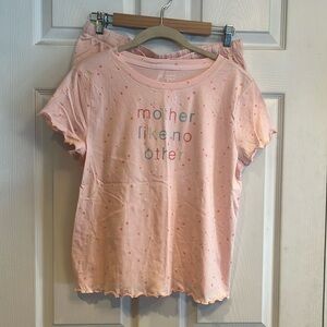 Lauren Conrad brand size M 2-piece pj short set. Top is short sleeve with “Mother like no other” logo on frontt. Bottoms are elastic/drawstringing waist shorts. Excellent quality. Excellent condition.