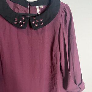 Lauren Conrad burgundy embellished Peter Pan collar dress