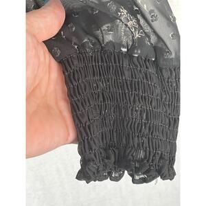 Add a touch of whimsygoth charm to your wardrobe with this Lauren Conrad top! This top features a dark floral pattern with a textured sheer overlay and textured sheer sleeves with ruched cuffs and pleating detail down front.