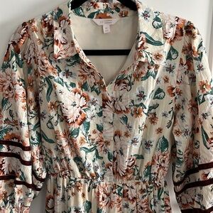 Lauren Conrad floral boho peasant ruffle hem mini dress size medium