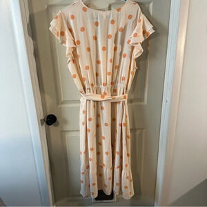 Lauren Conrad flutter sleeve midi dress. Size 3X. Light peach with large circles