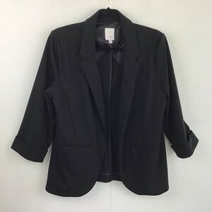 Lauren Conrad open front 3/4 roll up sleeve black blazer. Size 12 GUC with little sign of wear. Front pockets still sewn closed.