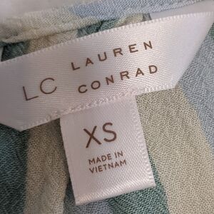 Lauren Conrad pretty lightweight (almost sheer but not quite) striped top size Extra Small XS. although it is extra small it is not tiny (please see pictures for measurements). Pretty pastel stripes in buttery yellow, sage green and soft sky blue.