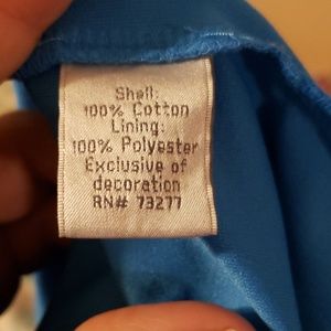 Blue spaghetti strap dress with palm tree and sailboat print and button detail. Adjustable straps. Pockets!