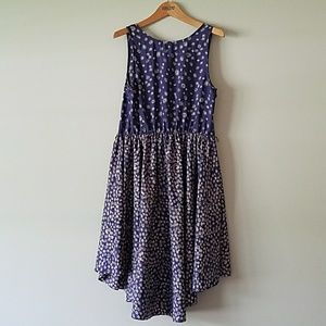 Flowy and flirty sunflower print dress from Lauren Conrad's collection. Mild high-low silhouette with side zipper, stretchy waist, size 6 and true to size. Small tear under the arm hole (repaired). Only lightly worn.
