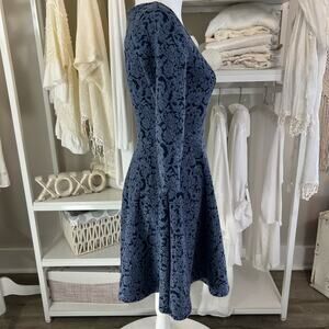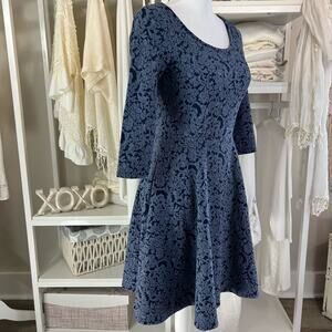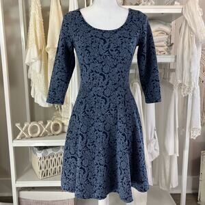 Lauren Conrad sz. XS Blue skater dress 3/4 sleeve knit A line Dress #0926