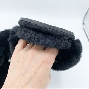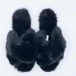 Lauren Conrad Black Fuzzy Criss-Cross Open Toe Slip-On Slipper NWOT Sm 6-7