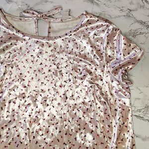 Lauren Conrad LC Pink Red Rosebud Print Short Sleeve Velvet Blouse Small