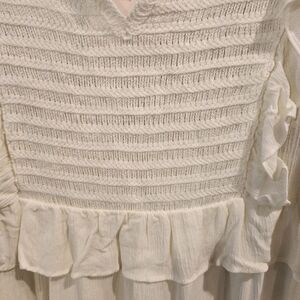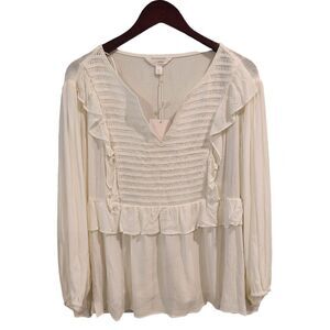 Lauren Conrad Smocked Ruffle Top Ivory Bohemian XL