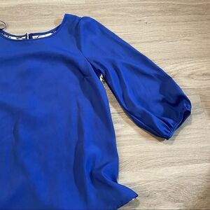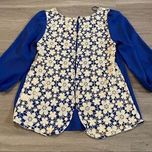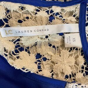 Lauren Conrad blue blouse with white lace back XS