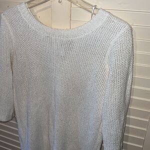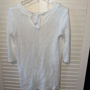 Lauren Conrad women’s size small knit sweater, keyhole and bow detail in the back, half sleeves, open knit pattern color is cream