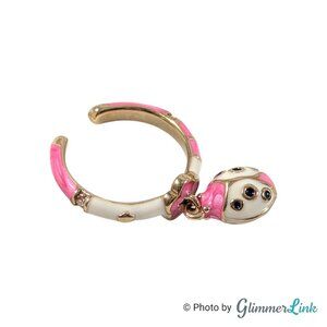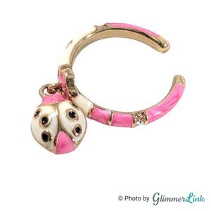 Super cute Lauren G Adams pink and white enameled gold tone ring featuring a ladybug charm.
