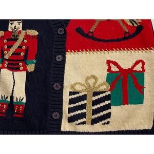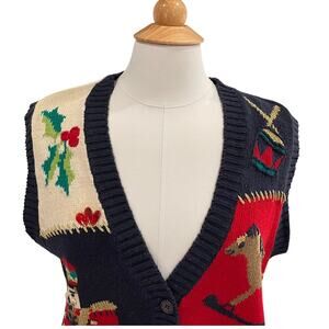 Lauren Gayle Navy, Red, Christmas Patchwork Sweater Vest, Nutcracker, Holly, M