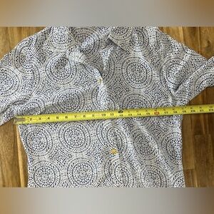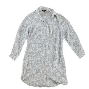 Lauren Gold 100% Silk White Button Down Shirt Dress Blue Geometric Print Size L