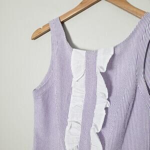 Lauren James Dress Small NWT Seersucker Shift Stripe Lavender Purple Lavender White Ruffle Sleeveless Back Zip Cotton Poly Preppy Southern Style Graduation Easter Brunch Vacation Day Dress