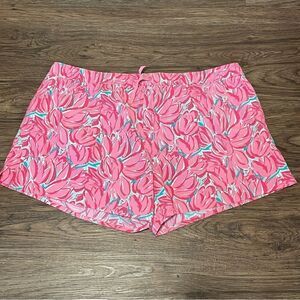 Lauren James Floral Drawstring Waist Shorts Pink White Blue Size 2XL